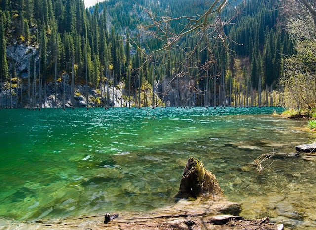 O Lago Kaindy é um lago com 400 metros de comprimento situado nas montanhas Tian Shan, a cerca de 129 km da cidade de Almaty no Cazaquistão.