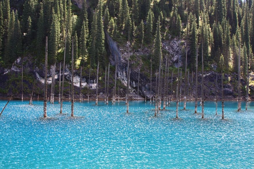 O Lago Kaindy é um lago com 400 metros de comprimento situado nas montanhas Tian Shan, a cerca de 129 km da cidade de Almaty no Cazaquistão.
